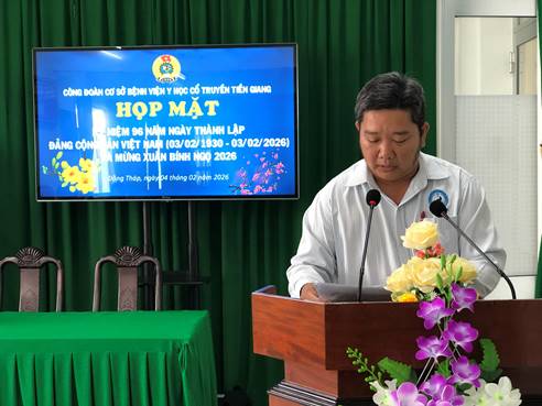 Sáng ngày 04/02/2026, vào lúc 8 giờ 00 phút, Công đoàn cơ sở Bệnh viện Y học cổ truyền Tiền Giang đã tổ chức buổi họp mặt kỷ niệm 96 năm Ngày thành lập Đảng Cộng sản Việt Nam (03/02/1930 – 03/02/2026) kết hợp mừng Xuân Bính Ngọ, tại Bệnh viện Y học cổ truyền Tiền Giang.